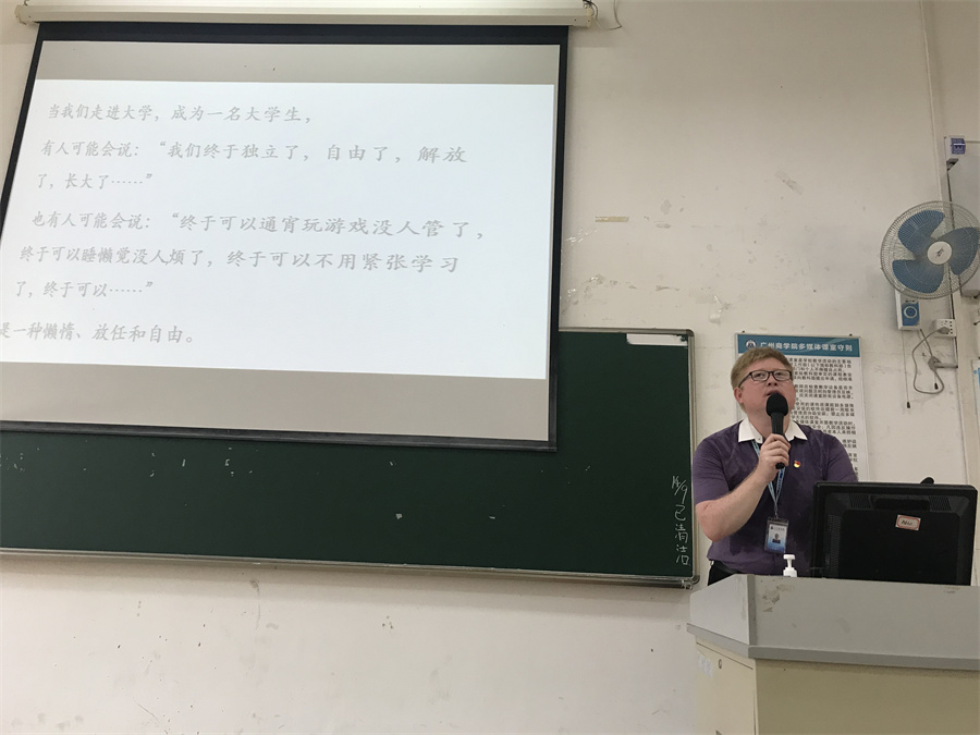 关树基还举例了哈佛大学非常著名的调查“关于梦想和目标对人生影响的跟踪调查”,通过数据分析指出在有清晰长期目标、短期目标的人和目标模糊、没有目标的人他们的人生截然不同,有清晰的目标能促使自己不断实现目标,赢得人生。课上,关树基还让新生在纸上写下大学四年的奋斗目标交由年级辅导员保管,并鼓励他们在自己的自媒体平台展示自己的四年奋斗目标用于时刻鞭策自己对照目标,与全体新生相约在大学毕业典礼上回顾自己是否实现自己定下的奋斗目标。