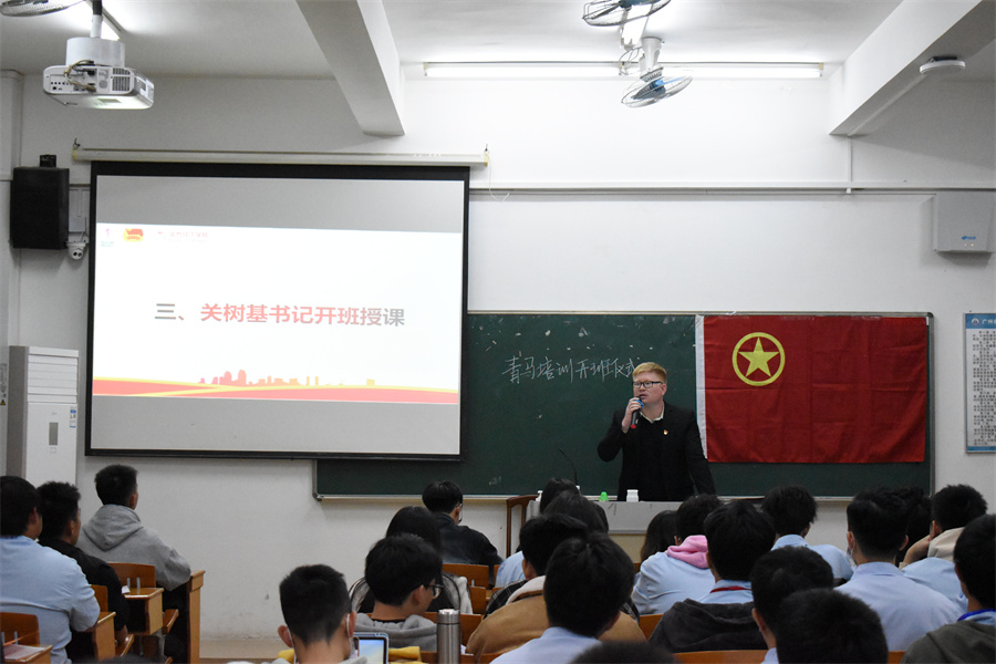 此次培训,关树基以“坚定理想信念,践行团学人的使命担当——如何锻炼成一名有责任担当的团学干部”为授课主题,他以正确认识团学组织、团学干部的初心和使命、团学干部的团队精神培养、团学干部要在工作中敢于担当、团学干部在哪些方面担当和团学干部疫情常态下如何担当作为授课内容,让团学干部及基层班团干部清楚知道加入团学组织的目的和当前学生干部存在的问题,引导团学干部树立正确的服务意识。他指出,学院开班“青马班”旨在打造一支高度团结、合作高效的队伍。他在课堂上提出,团学组织举办活动一定要站立在熟知校情院情班情的基础上开展,活动要与学院专业结合,与学生兴趣爱好结合,深入调研,结合实际,办同学们喜闻乐见的活动,。他还强调学生干部是学校学生中的骨干,是学校联系学生的桥梁和纽带;是学校思想政治教育队伍中的重要组成部分;是教师的得力助手;是学校良好学风的带头人、校园文化建设的具体组织者、参与者和实施者。指出,团学干部是一种身份,是一个符号,是一座桥梁,是一栋堡垒,是一面旗帜,更是一个标杆!