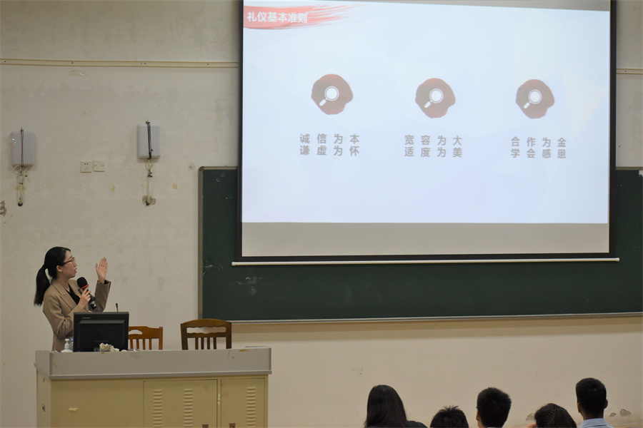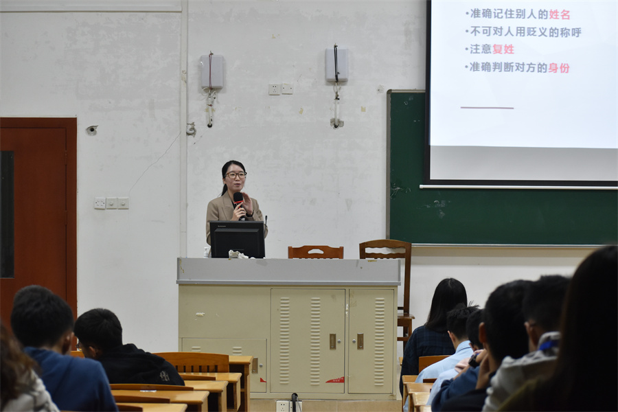 课上,姚安贤以《注重礼仪礼貌》为题,从礼仪基本准则、语言礼仪、行为礼仪、日常礼仪四个方面进行授课。