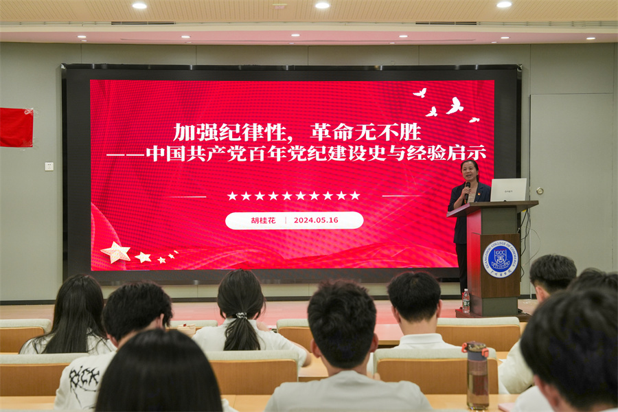 胡桂花以“加强纪律性,革命无不胜”为主题,围绕“中国共产党纪律建设史的百年演进”“中国共产党纪律建设经验”“中国共产党纪律建设启示”三个方面进行授课。她带领学员们学习毛泽东同志《关于纪律建设的重要论述》,从党史的角度出发,深入阐述了党的纪律建设对于党凝聚力及战斗力的重要性,强调纪律严明是党的光荣传统和独特优势。她指出,要用党史育人,要求学员们将党史牢记于心,坚定理想信念,推进自我革命。胡桂花通过深入剖析党纪建设的历史脉络,强调了全面从严治党的重要性,希望学员们能从党史中汲取宝贵经验,做到学史明理、学史增信、学史崇德、学史力行。