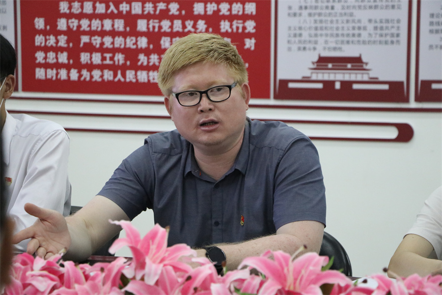 座谈会上,关树基向青年学生代表们分享了《习近平与青年大学生朋友们(第二辑)》、习近平总书记在4月25日考察中国人民大学重要讲话精神和习近平总书记在庆祝中国共产主义青年团成立100周年大会重要讲话精神的思想精髓和主要内容。他还分享了自己观看庆祝中国共产主义青年团成立100周年大会直播的心得体会。他分享到:“作为一名人民教师,一名共产党员,一名党的基层干部,做好‘为党育人,为国育才’工作是我神圣的使命。站在时代发展的潮头,我将牢记初心使命,牢记立德树人根本任务,时刻保持仁爱之心,甘做一颗永不生锈的螺丝钉,带领广大青年学生向历史学习、向英雄学习、向人民学习,向万千青春榜样学习,自觉听从党和人民召唤,胸怀‘国之大者’,担当使命任务,成长为有理想、敢担当、能吃苦、肯奋斗的新时代好青年,到祖国最需要的地方建功立业。”他强调中国青年在新民主主义革命时期、社会主义革命和建设时期、改革开放和社会主义现代化建设新时期、中国特色社会主义新时代奋发有为,积极贡献,充分彰显了青年的责任担当。他勉励参会青年学生代表要时刻不忘党的群众路线,不忘习近平总书记重要讲话精神,充分团结青年、凝聚青年、服务青年,不做青年“官”,只为青年友,做好全心全意为同学服务的工作。