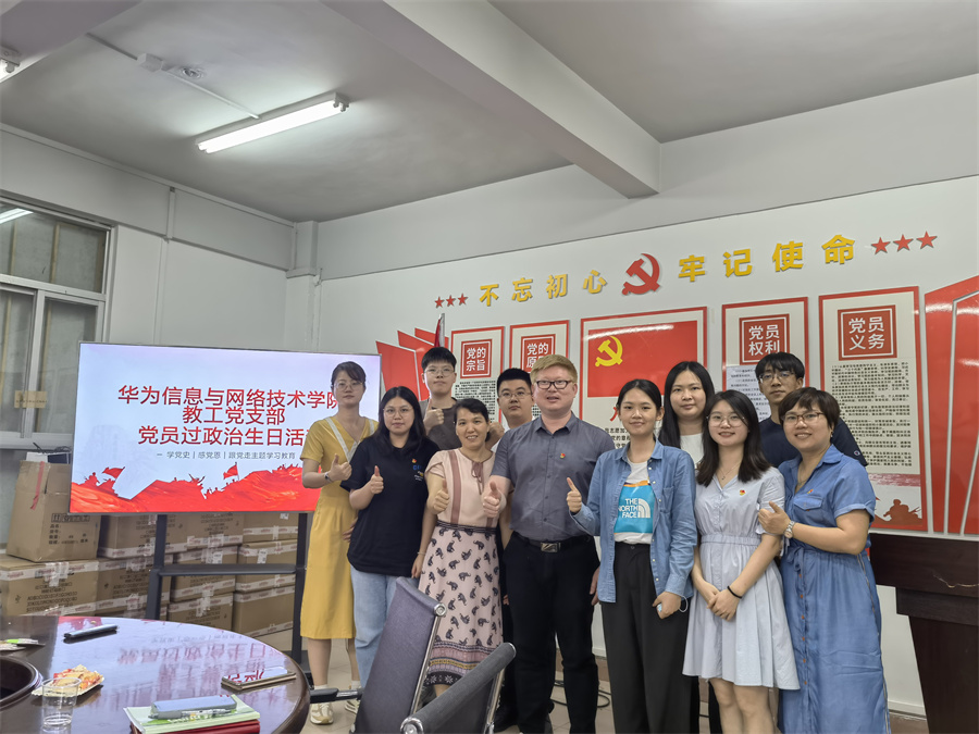 为引导广大党员强化身份意识、宗旨意识和责任意识,把教育管理党员的活动更好地融入生活、融入日常,增强党员的组织归属感和身份认同感。6月23日下午,华为信息与网络技术学院教工党支部在艺术楼105党团活动室开展主题党日活动。学院党总支书记关树基、教工党支部书记黄静以及全体教工党员共计12人一同过“政治生日”,忆入党初心。党日活动分为四个环节进行,一是第一议题开展党章学习;二是“谈初心、讲感悟”;三是“颁发贺卡、纪念品”;四是“重温入党誓词”。