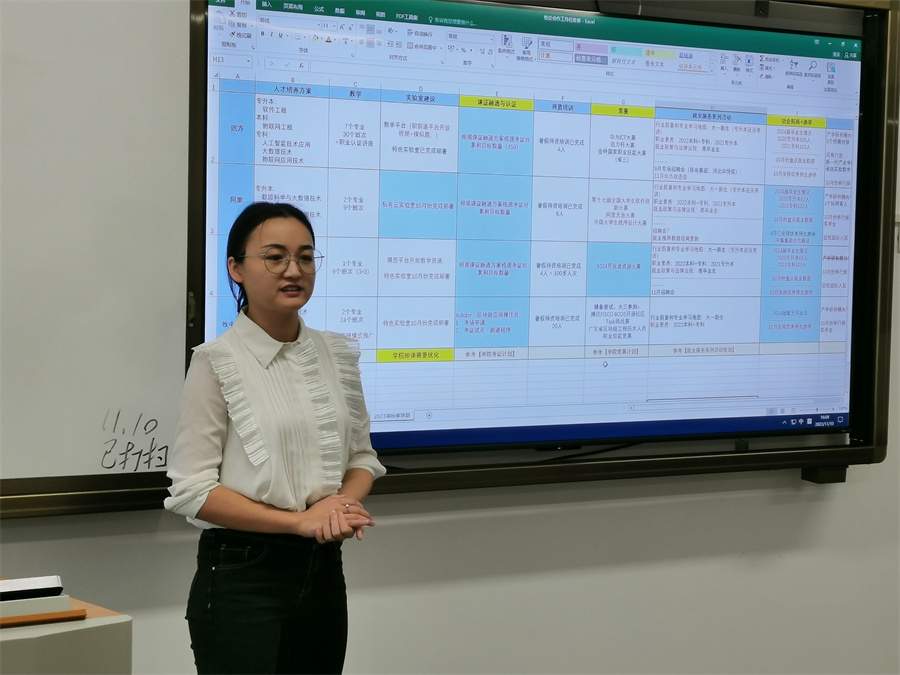 接着,王艳芝复盘本学期的校企合作各模块事项,分别从人才培养方案、教学实施与课证融通、实验室建设、访企拓岗与游学、学科竞赛、学生就业服务、实践教学基地等方面陈述了现阶段与各个企业合作的推进情况。