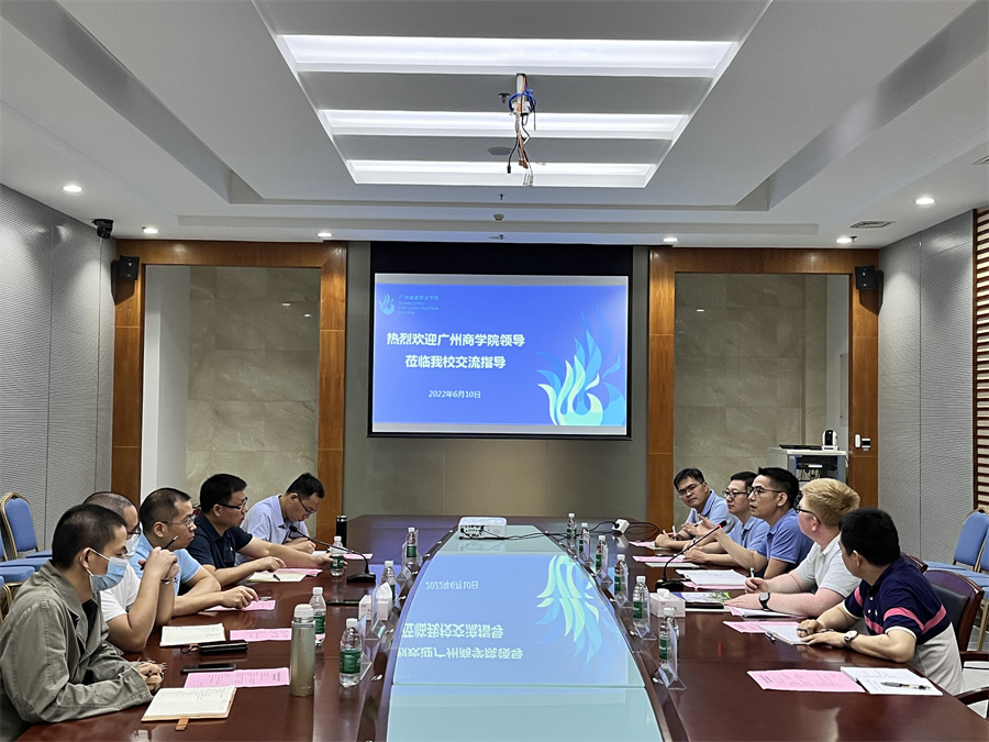参观结束后,双方在城建职业学院行政楼一楼多功能会议室进行了交流。交流会上,曹春华对我校一行表示热列欢迎,紧接着对广州城建职业学院的办学历史进行详细介绍,他着重介绍了信息工程学院的发展历史和创业艰难,重点介绍了办学成果和学院特色。关树基代表广州商学院122cc太阳集成游戏一行对广州城建职业学院信息工程学院的热情接待表示感谢,紧接着介绍了广州商学院的办学历史、办学理念、办学定位、办学特色和师资力量、校园荣誉等。他着重介绍了122cc太阳集成游戏的基本情况、办学特色、师资力量、校企合作模式和专业设置。