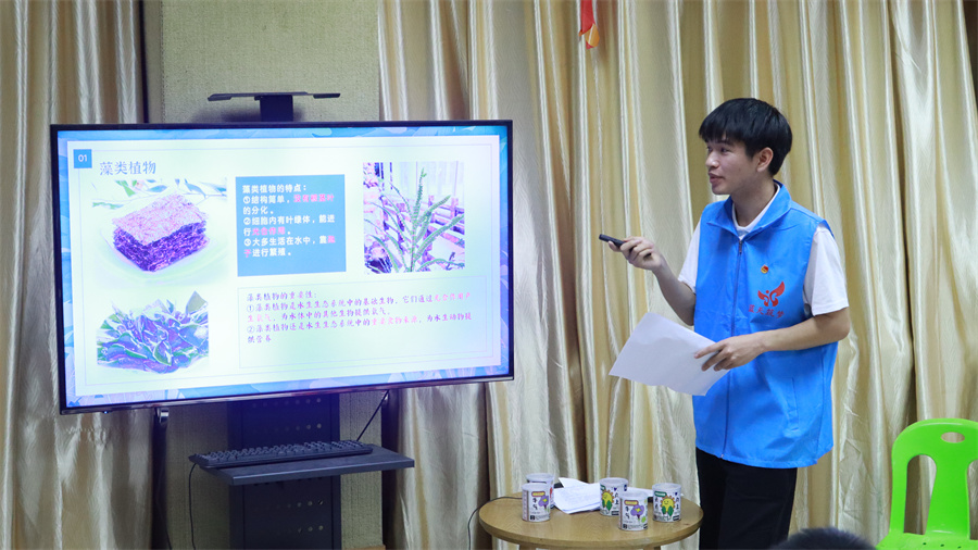 在科普生活课上,志愿者小老师引导学员探索植物奥秘,深入认识植物的六大器官,并带领他们追溯植物的进化历程。
