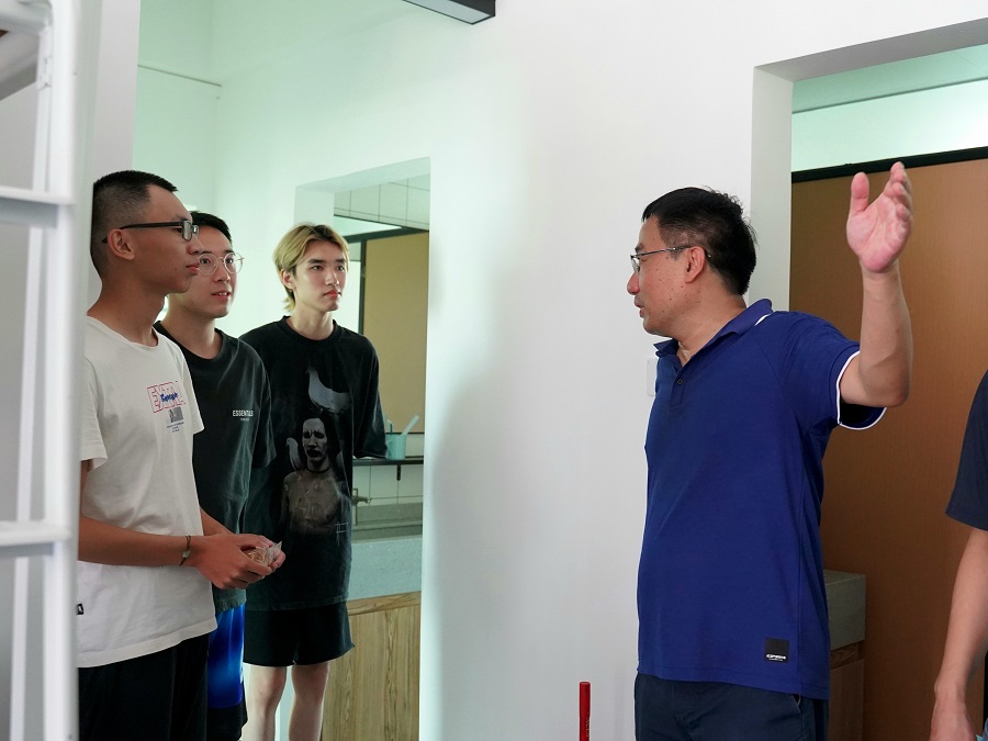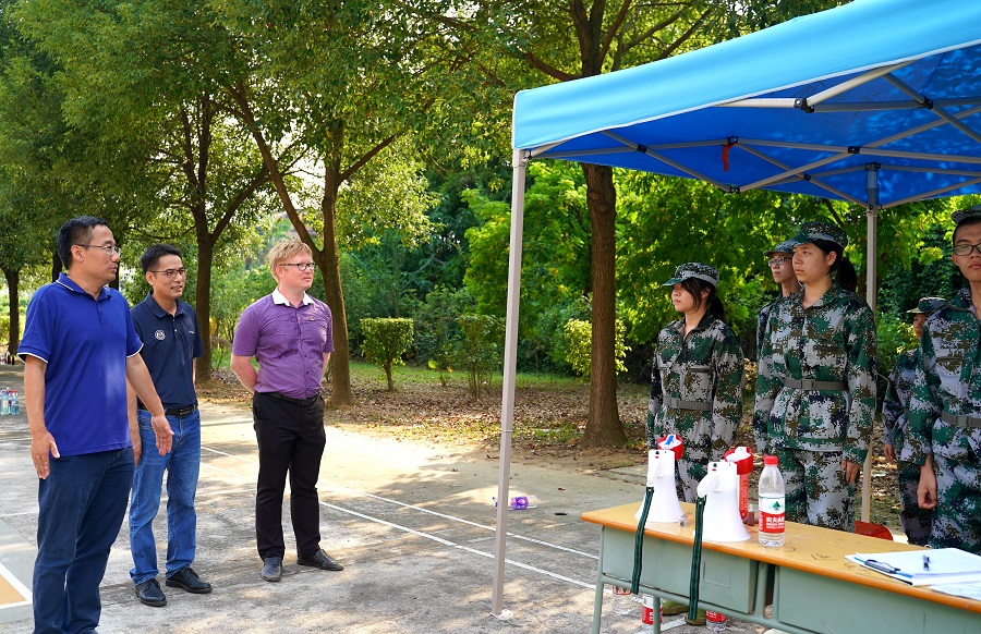 另外,在新生辅导员的陪同下领导们来到军训场地进行走访,并对军训学生进行慰问鼓励。在慰问走访过程中,院领导对军训的新生致以诚挚的关怀以及问候。他们详细地了解新生军训工作进展情况,并与教官和新生亲切交流,不仅对教官们的辛勤劳动表示感谢,也对新生们给予了充分鼓励。同时,他们十分关心新生们的身体健康情况,叮嘱新生辅导员要留意新生的身体情况,做到掌握情况、做好登记、及时解决学生的困难,尽量避免在气温最高的时段进行训练,并叮嘱学生要按时休息,科学作息。